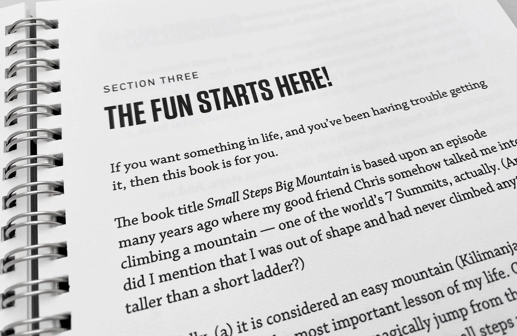 Small Steps Big Mountain is a step-by-step tool that helps you reach big goals by taking little steps. It includes: